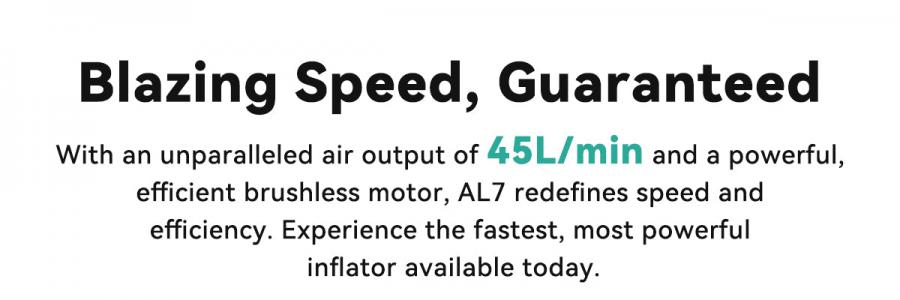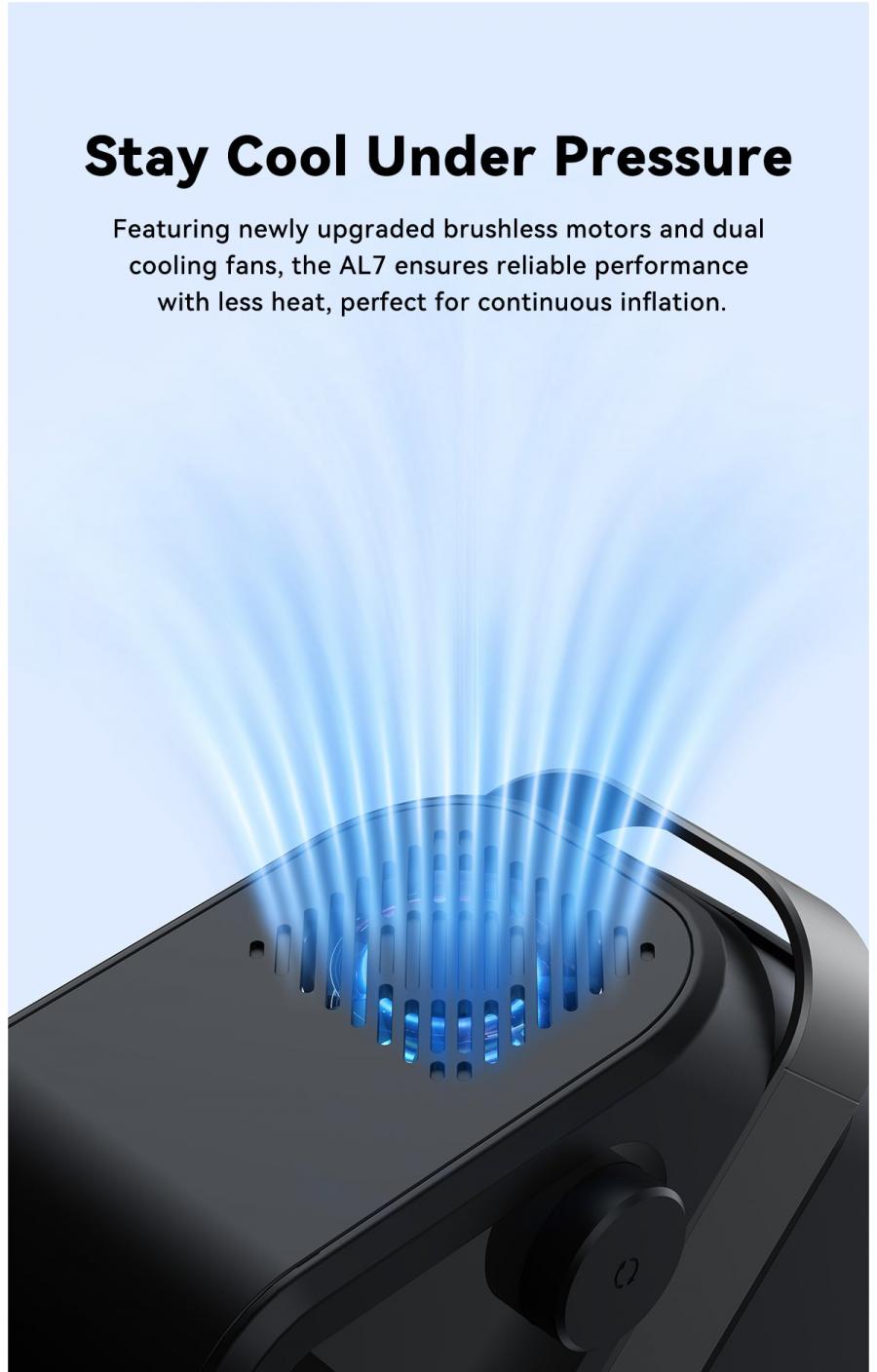 Featuring newly upgraded brushless motors and dual cooling fans, the AL7 ensures reliable performance with less heat, perfect for continuous inflation.