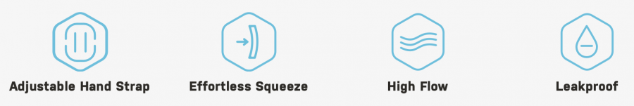 Our Tempo Pro handheld sits securely in your hand. The unique sandal-cut strap design rides comfortably, allows for more airflow, minimizes irritation, and wraps around your wrist to do the gripping for you. The Tempo Bottle is ergonomic for easy squeezing, slimmed down for a comfortable hold, and leakproof. Easily remove the strap for cleaning in the dishwasher.