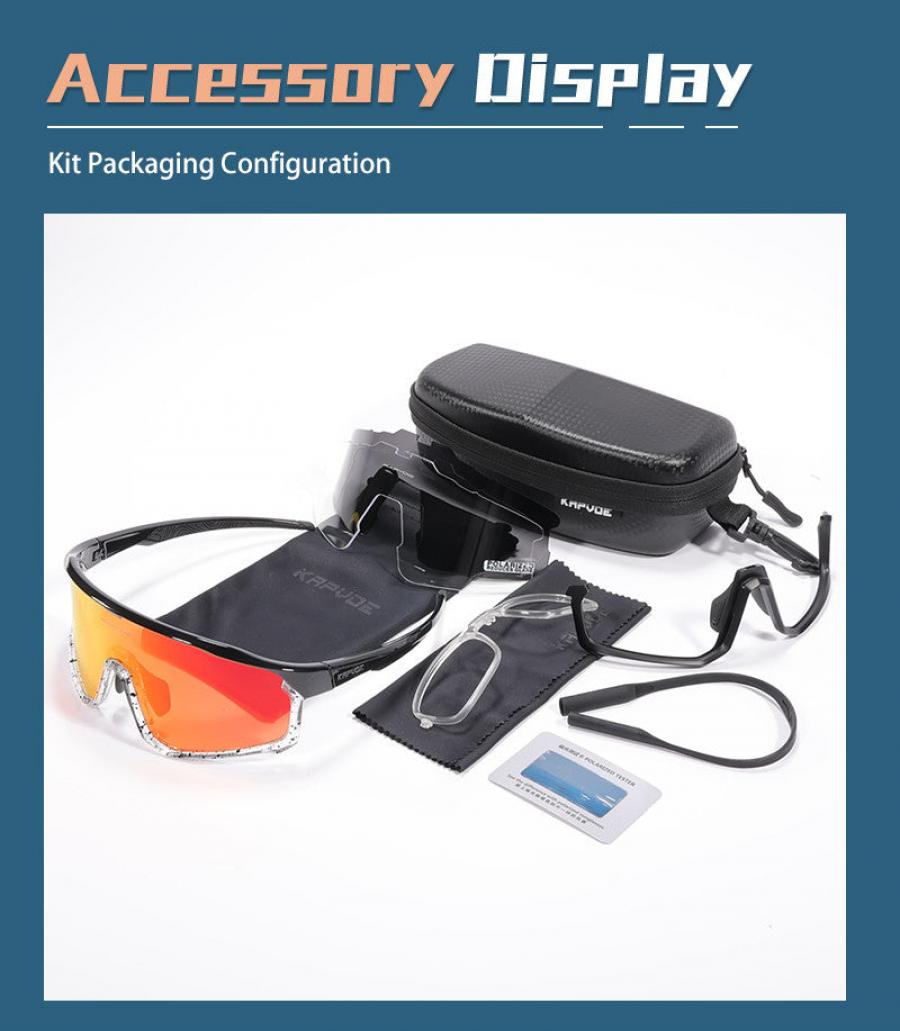 Other Accessories:Different Rims Under the Glasses x 1 + Polarization Test Card x 1 + Myopia Frame x 1 + Glasses Cloth x 1 + Glasses Bag x 1 + EVA Box x 1