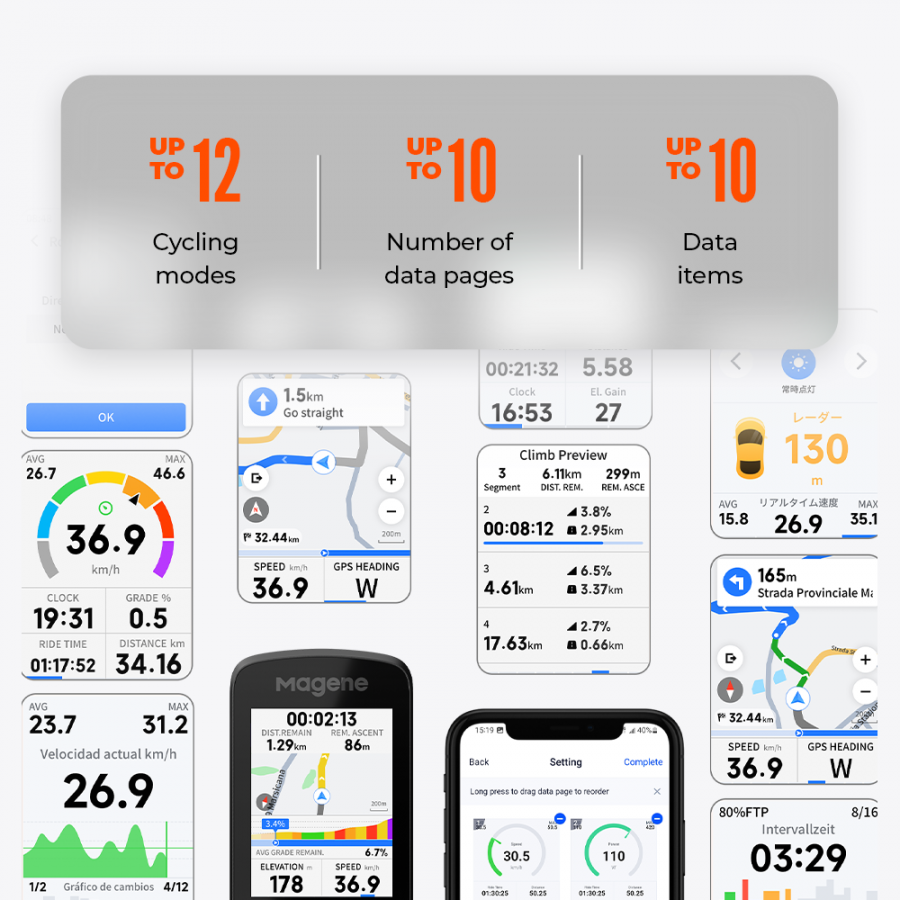 Supporting 12 cycling modes with customizable data layouts, it caters to diverse riding needs for various scenarios. Whether it's a leisurely weekend ride or a daily commute, there's no need to reset data displays.