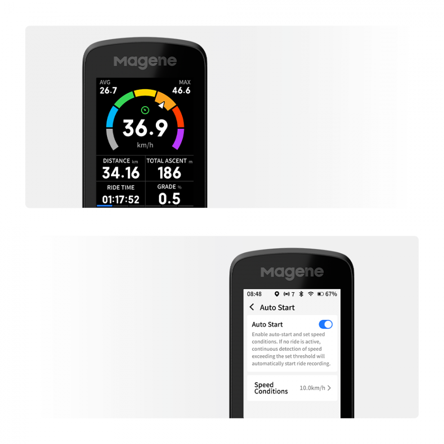 Auto Start: The bike computer automatically starts, pauses, and resumes recording based on your speed, ensuring you never miss a ride.