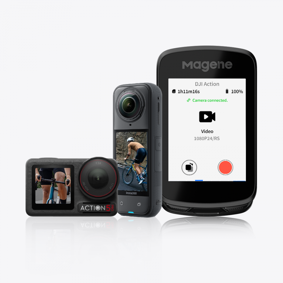 Real-Time Status Monitoring | Never Miss a Shot: Once paired, the camera’s remaining battery and storage are displayed directly on the bike computer screen—so you’re never caught off guard without power or space.