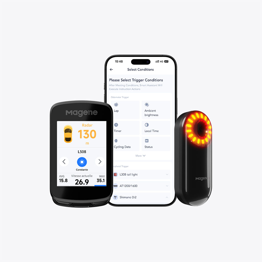 Smart connections: You can control the L508 radar tail light and L308 intelligent expression tail light directly from the bike computer, freeing you from the need to use your phone. Achieve intelligent interconnection between devices by setting conditions for different riding status.