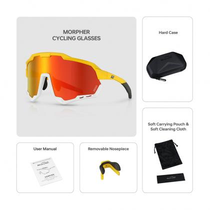 All lenses are made from impact-resistant polycarbonate with full UV400 protection, shielding your eyes from harsh light, flying debris, and wind. Precision ventilation on the lens improves airflow and prevents fogging—especially useful on long climbs or humid days. With MORPHER, you never lose sight of the road.