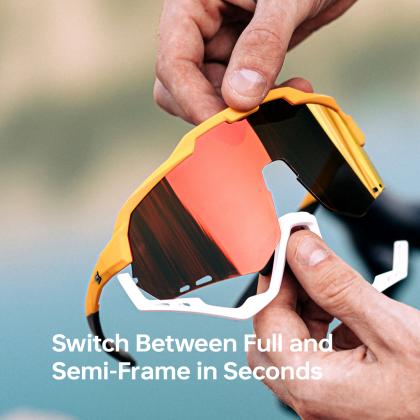 The frame is crafted from ultra-light TR90 for optimal flexibility and strength. Key contact points are wrapped in grippy TPR rubber to prevent slipping. For enhanced fit and adjustability, the nose pads and temple tips incorporate a malleable metal core, allowing the frame to mold naturally to your head shape for a truly custom fit. The unique pattern design on the temple tips and nose pieces improves grip and enhances sunglass retention, ensuring the glasses stay firmly in place—even through sweat, speed, and vibration.