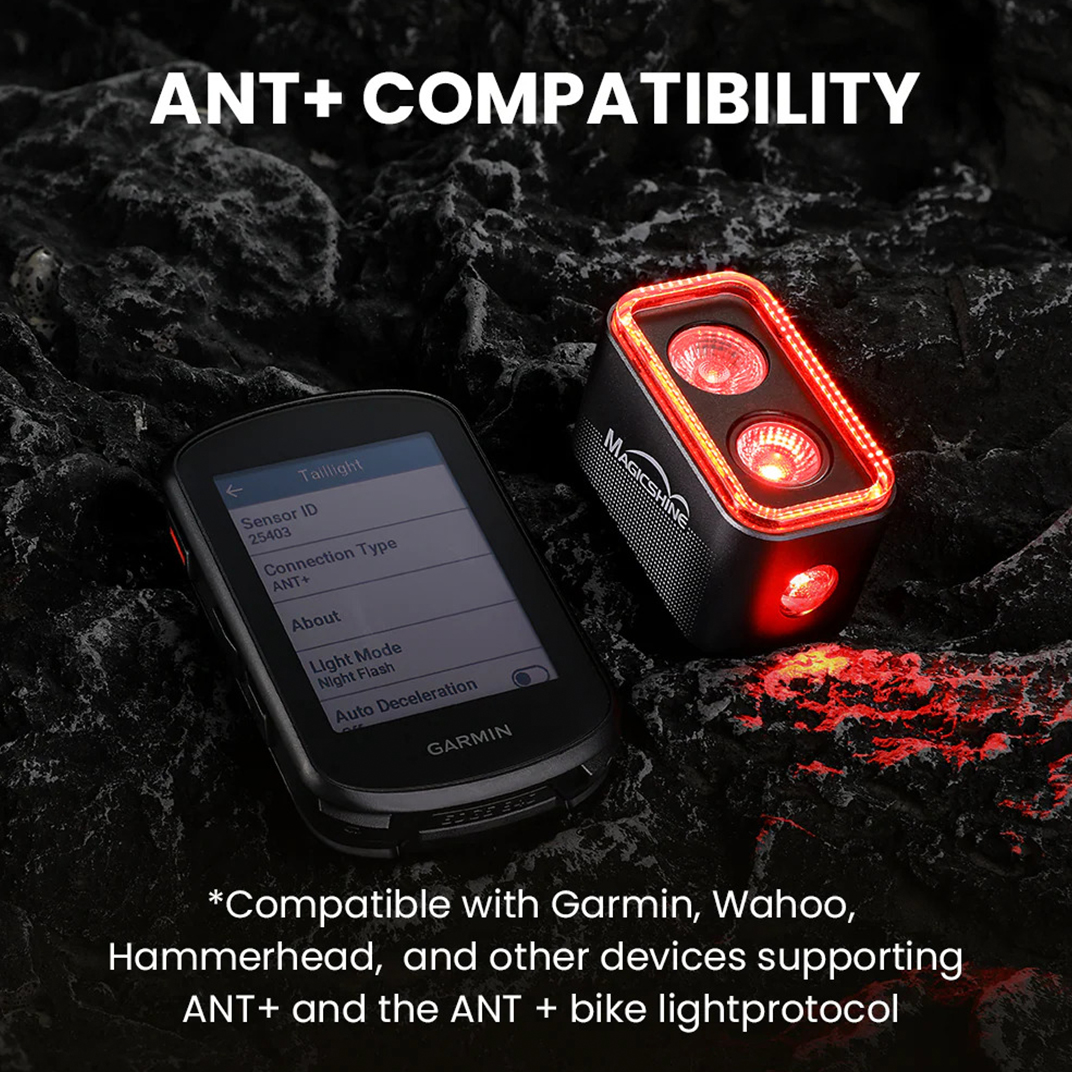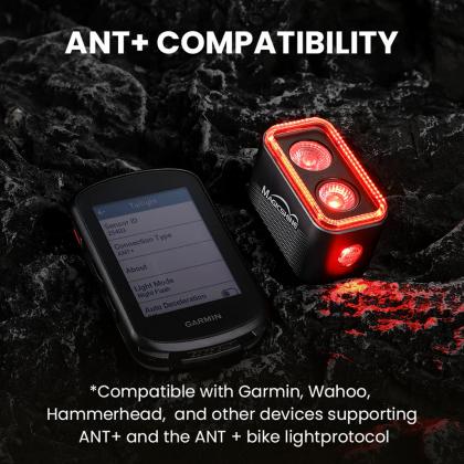 FTR LightSync Control links seamlessly to the MJ-6558 remote for front-rear control at the push of a button. Prefer cockpit integration? The SEEMEE 400 connects directly with Garmin, Wahoo, and Hammerhead bike computers via ANT+—giving you effortless control right from your handlebars.