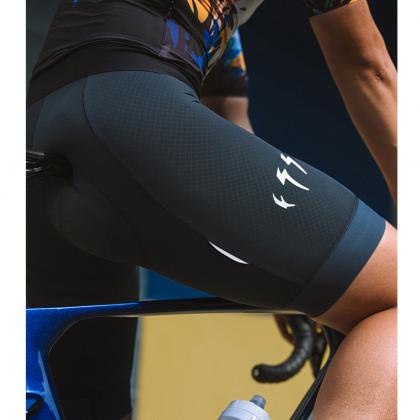 Main panel 8020 Lycra is a breathable, stretch knitted fabric that is quick-drying and moisture-wicking. The rear panel features reflective elements for riding in dim light environments. Breathable mesh on the back promotes maximum breathability and supports any movement. Microfiber braces dry quickly. The leg bottom are woven from silicone-free fabric to prevent the shorts from moving up while riding.