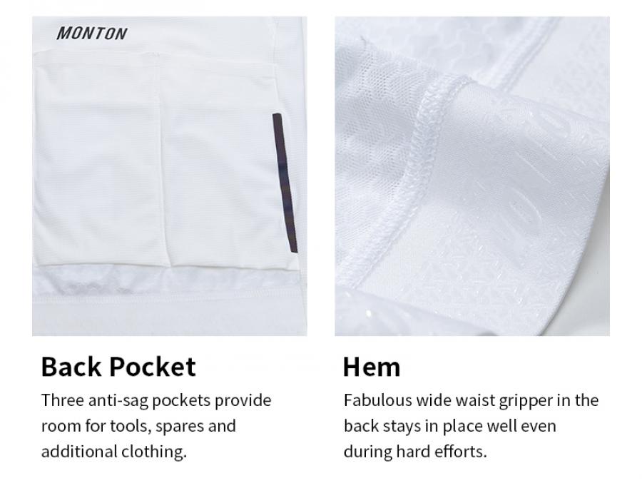 The subtle yet striking Lock Grid texture not only adds a refined aesthetic but also enhances aerodynamics, reducing drag as you power through the miles. Reflective details play a crucial role in keeping you safe, whether you're riding at dawn or dusk. Small reflective dots on the sleeves enhance visibility without sacrificing style. Additionally, the reflective MONTON logos on the chest and back, paired with vertical reflective strips along the sides, ensure you’re seen when the light fades.