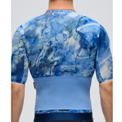 A design inspired by the fresh start of the journey, this jersey blends calming blues with dynamic brush strokes to evoke the early days of discovery and growth, much like the first wave of change that marks the beginning of an artistic evolution.
