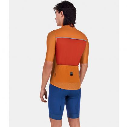 Form fitting jersey. Remains close to the body minimizing wind resistance in the saddle. This is the fit that defines Santini. Incredibly versatile as it gives you a sleek profile while maintaining incredible comfort throughout your ride.