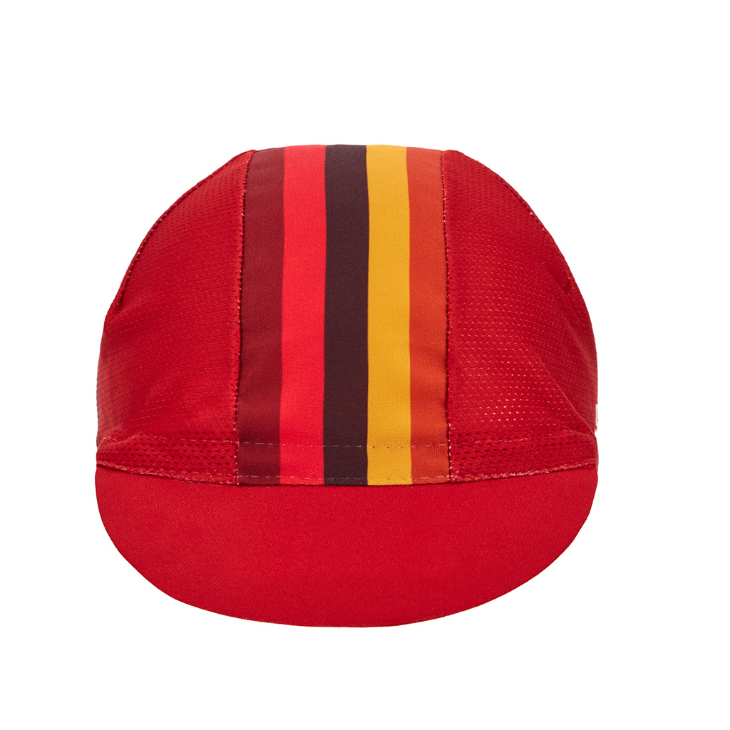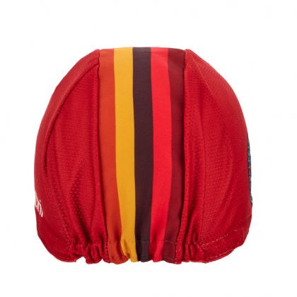 The Spain cycling cap from the Nations Line honors the 1984 UCI Track World Championships held in Barcelona, a city rich in cycling history. This cap features an exclusive design where the rainbow stripes and color details are inspired by the Spanish flag, celebrating national pride and the connection to the World Championships.