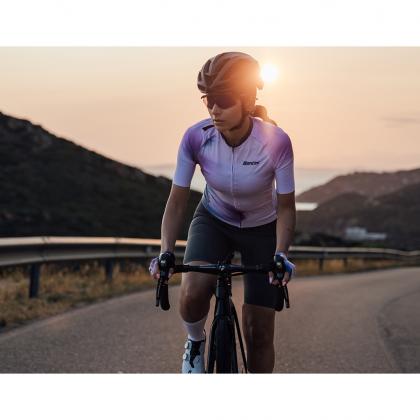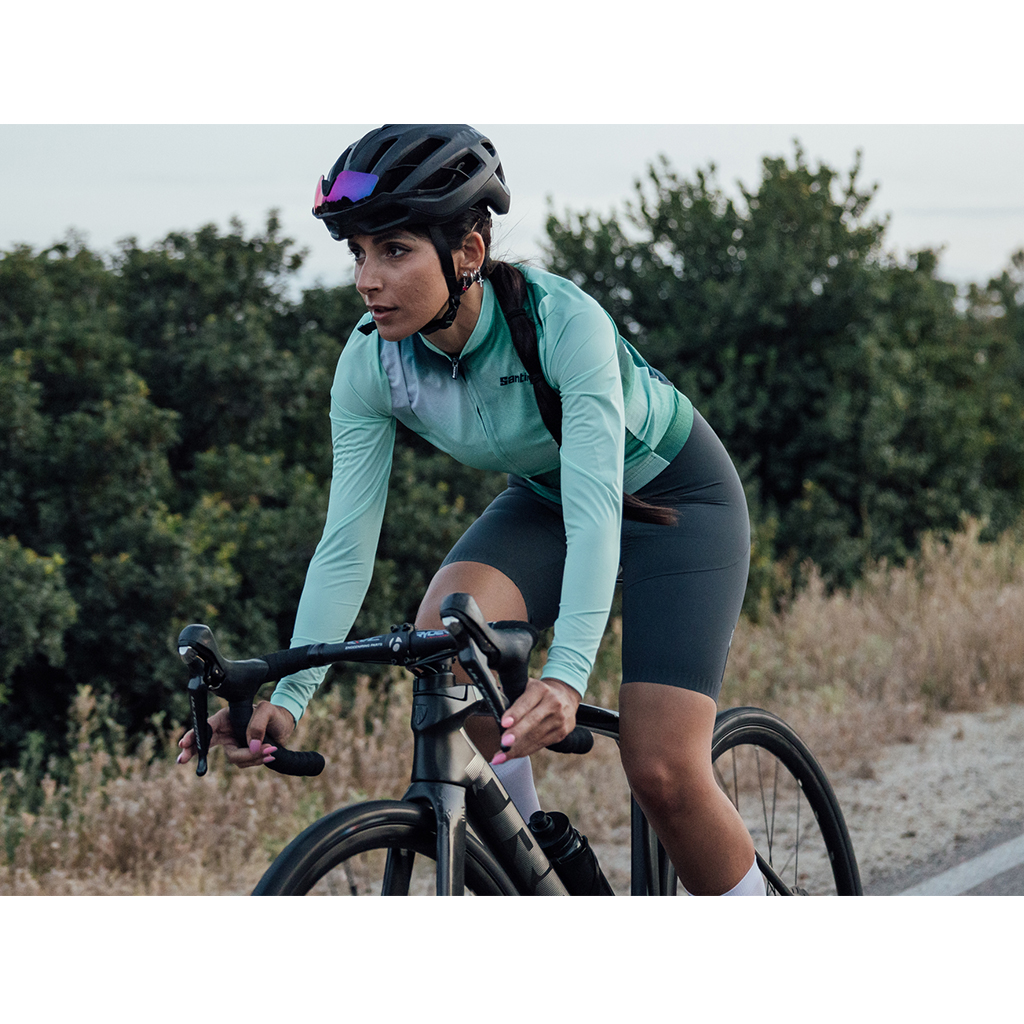 GILevo chamois with gel core to absorb shocks steadily and gradually for comfort on medium to long rides. Designed for women. Reflective rear details on the back of the thighs for high visibility in the dark.