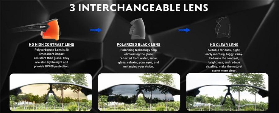 Lens Configuration:Color Lens x 1 + Black Polarized Lens x 1 + Transparent Lens x 1