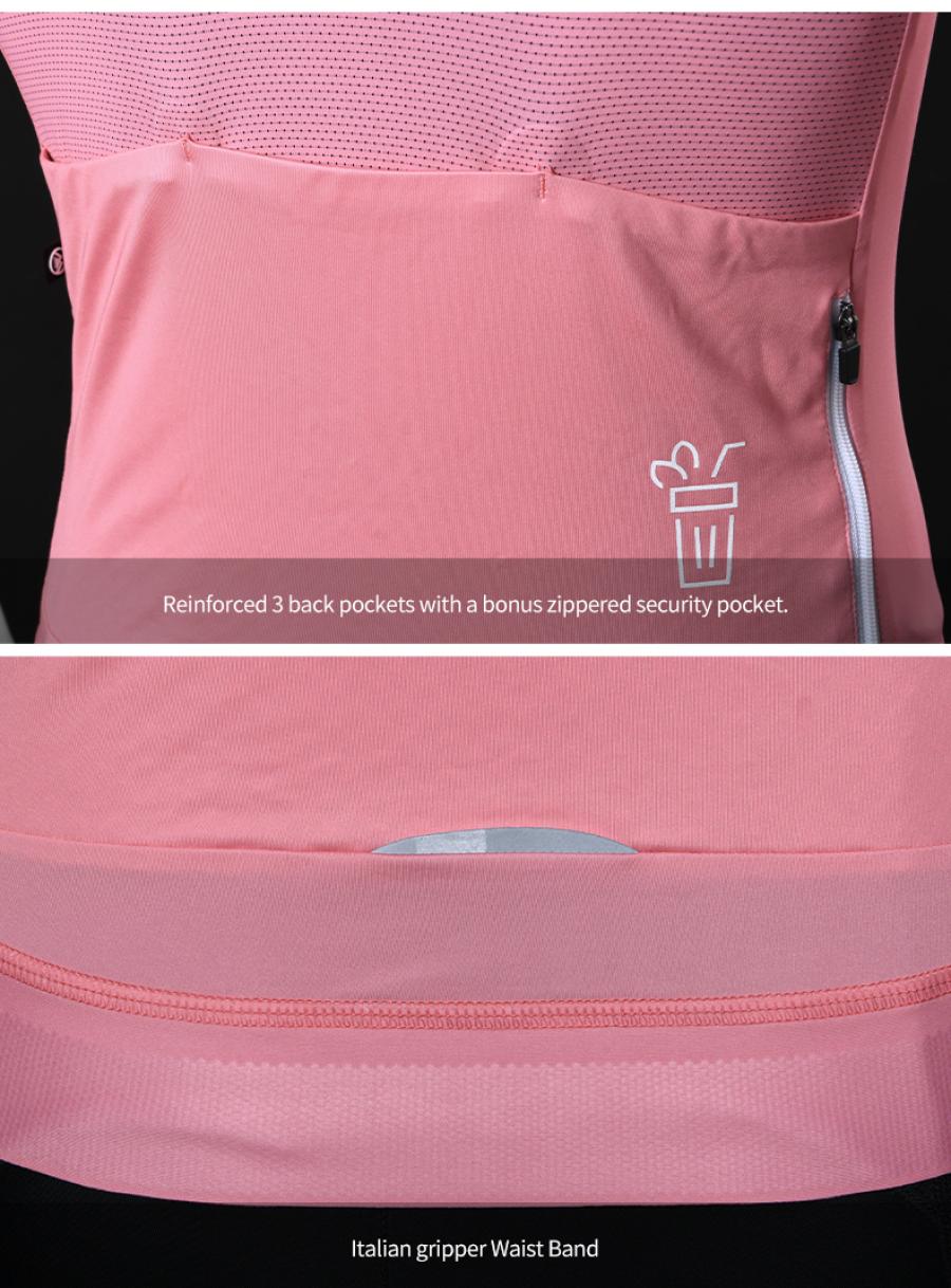 Low-profile collar and bonded sleeves offer a superior aesthetic. The Italian silicone gripper, meanwhile, keeps the hem at the waist line in place, while the three rear pockets are reinforced for extra durability. There is an additional zippered valuables pocket.