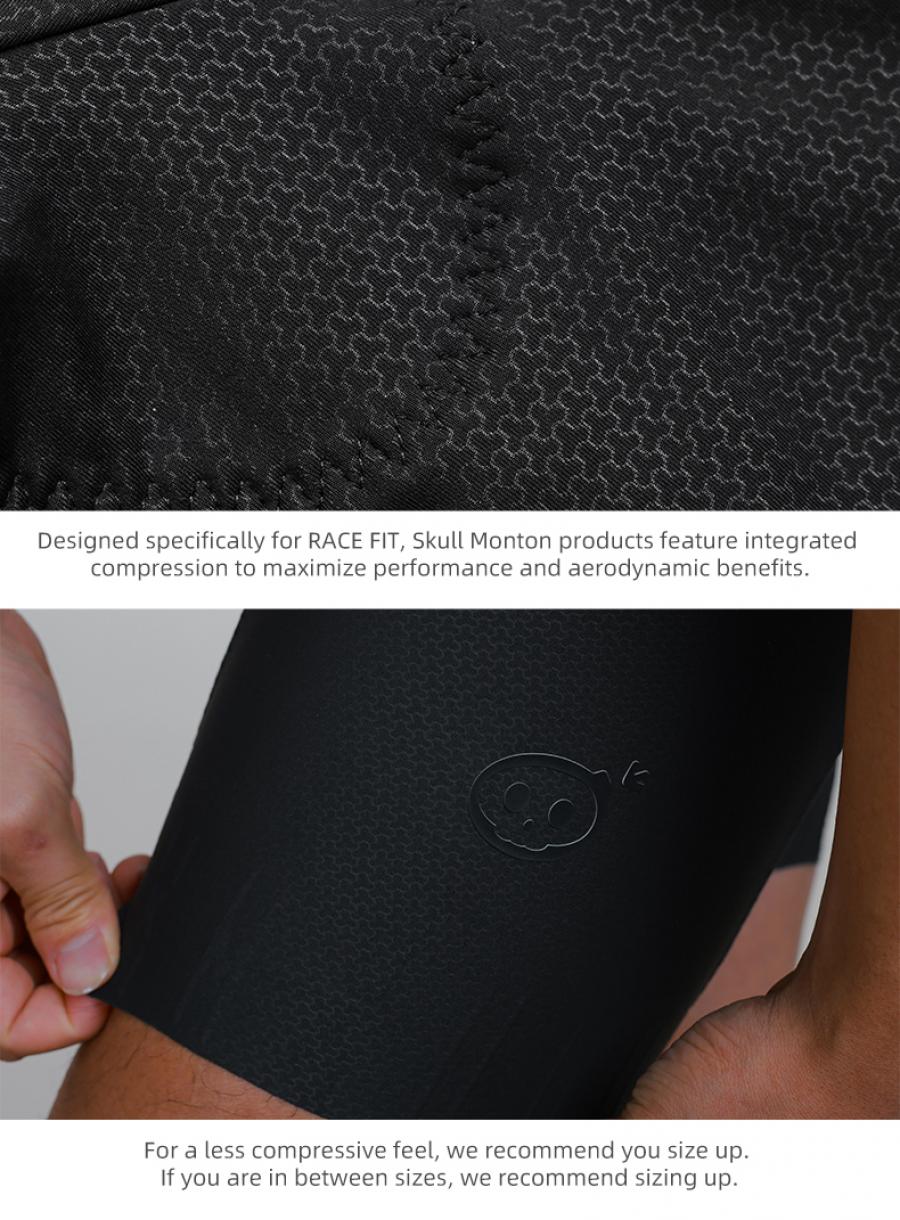 Designed specifically for RACE FIT, Skull Monton products feature integrated compression to maximize performance and aerodynamic benefits. For a less compressive feel, we recommend you size up. If you are in between sizes, we recommend sizing up.