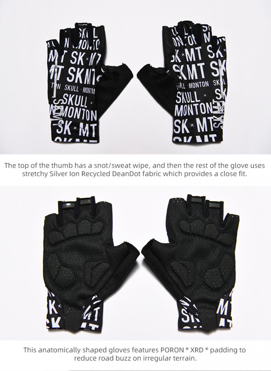 The center of the palm is laser-perforated for increased breathability. For the back of the hand, the top of the thumb has a snot/sweat wipe, and then the rest of the glove uses stretchy Silver Ion Recycled DeanDot fabric which provides a close fit.