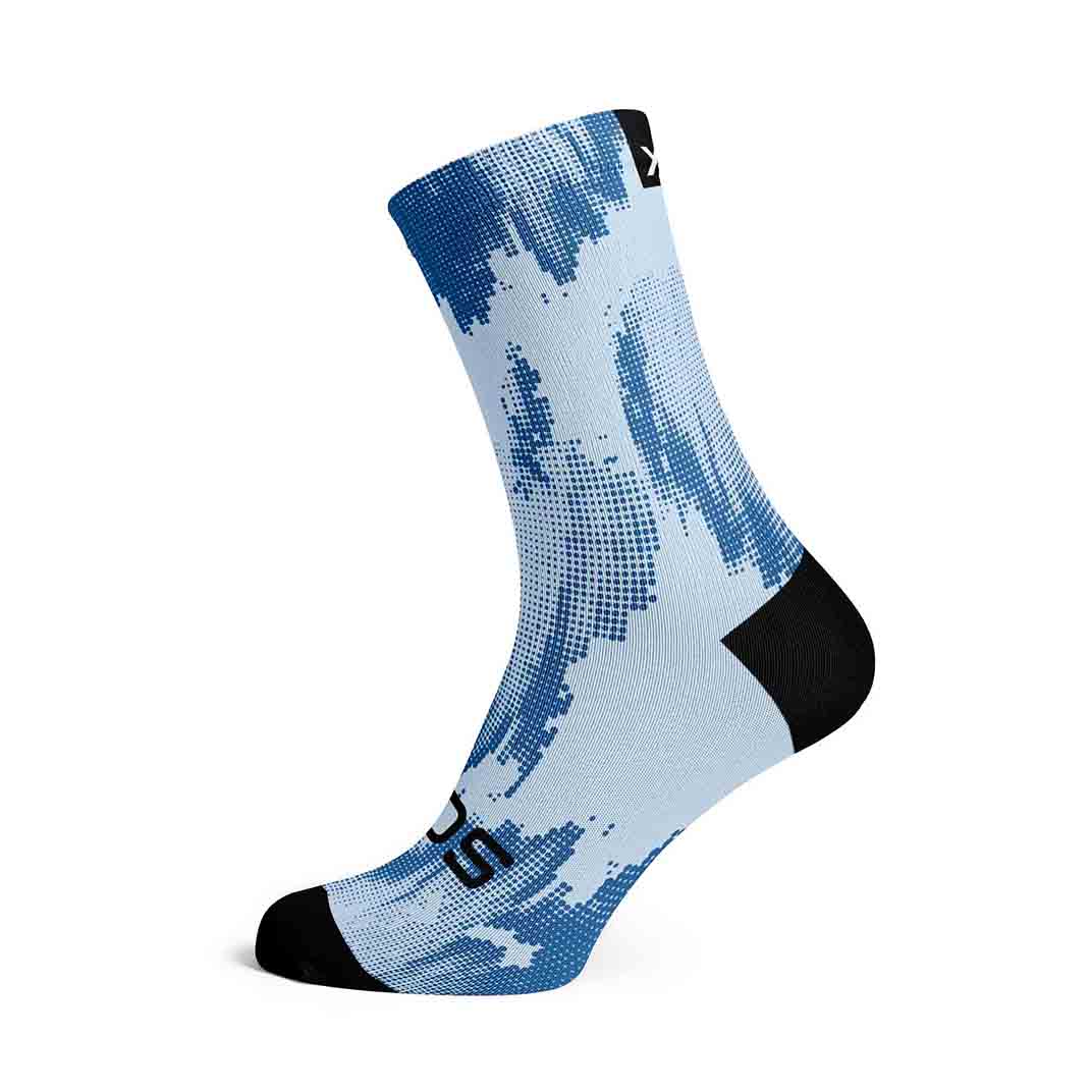 The Blue Gravel Minimalist Crew Socks dive into the depths of seamless style. This design features a blend of different blue shades, creating a serene yet striking halftone effect. They are perfect for any adventure. They are comfortable and durable for any occasion.