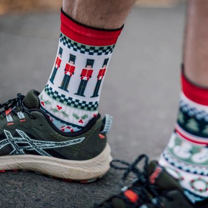 This holiday season we're decking the halls with our Holly Jolly Nutcracker Crew Socks - a playful nod to classic Christmas "ugly sweater" traditions. Featuring bold nutcracker soldiers, candy canes, mistletoes, and cheerful festive patterns. These socks are made to stand out and spread joy with their vibrant red, green, black, and white design.