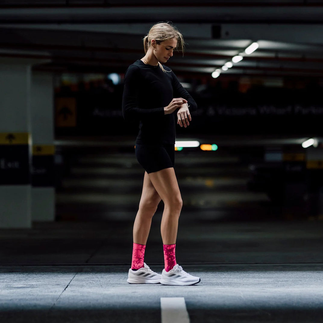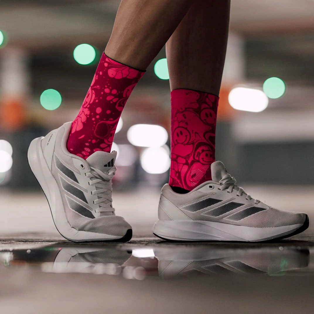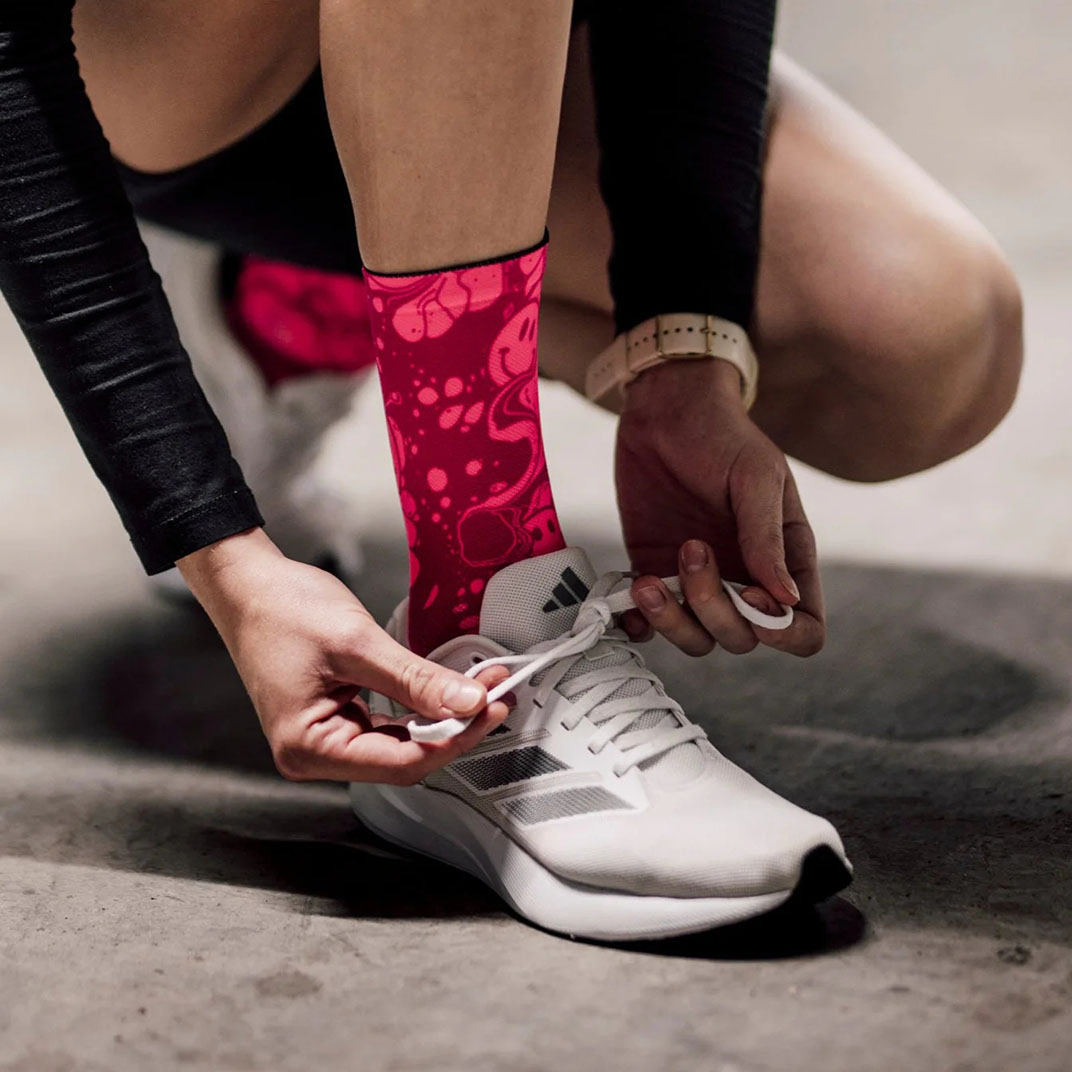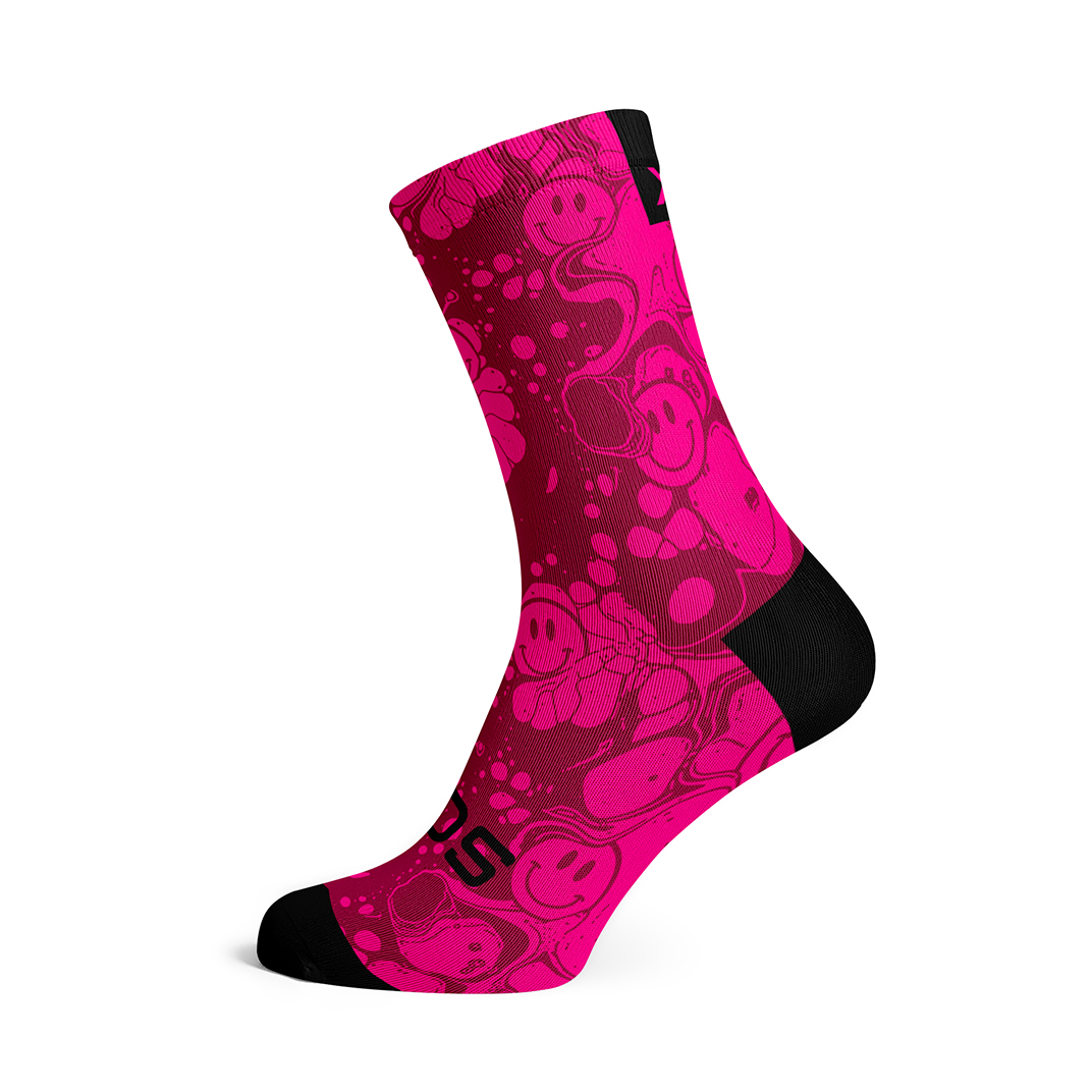 Neon Slide Pink brings the heat with hot pink energy, layered in swirls and cheeky smileys for a look that moves. A blister-free performance sock, made to support athletes, creators, and go-getters through every session, smile, and sprint.