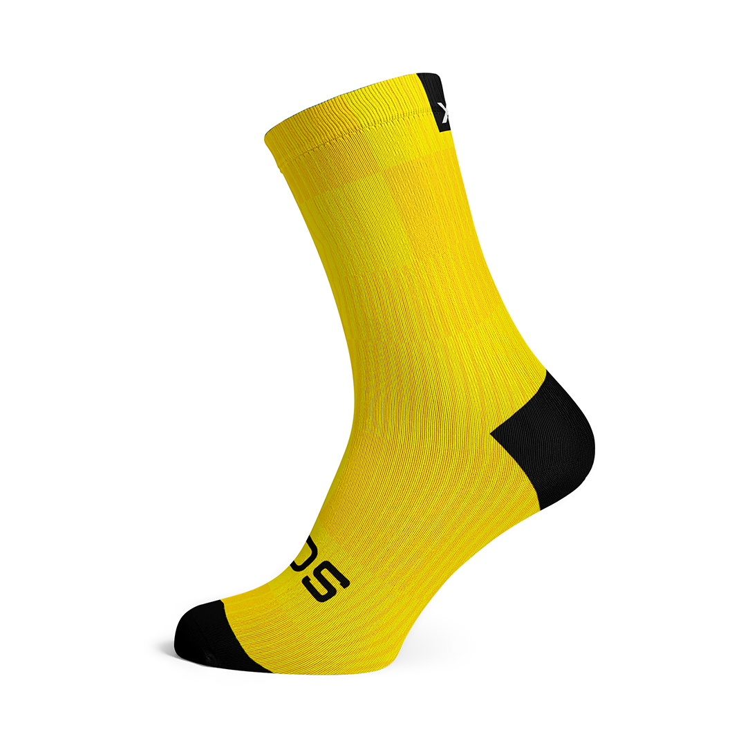 Part of our innovative 'Slight' range, these golden Yellow socks offer lightweight comfort without compromising on durability or performance. The design features a striped pattern in varying shades of radiant and sunlit yellow, featuring a sleek black heel and toe for a modern, athletic look. The subtle ribbing ensures a snug, supportive fit that stays in place, while the breathable fabric works hard to wick away moisture, keeping your feet cool and dry. These vibrant yellow athletic socks are made to keep you performing at your best, whether you're hitting the track, the gym, or simply enjoying a casual day out.