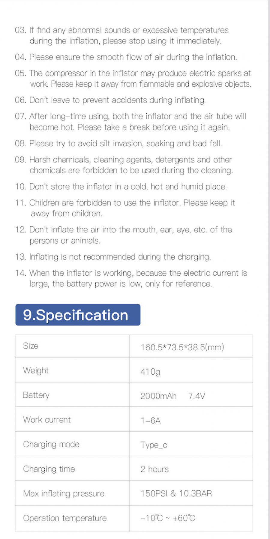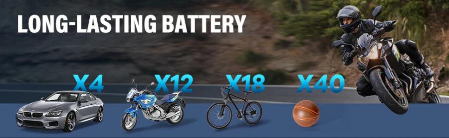 Equipped with a rechargeable 2*2000 mAh battery, the handheld bike air pump can inflate tires up to 150 psi/10.3 bar. The powerful motor of this bike tire pump enables fast inflation – 8 minutes for a car tire, 2 minutes for a bike tire, and 1 minute for a ball. Note: not suitable for 4x4, truck, vehicle tires, air mattresses, or inflatable boats.