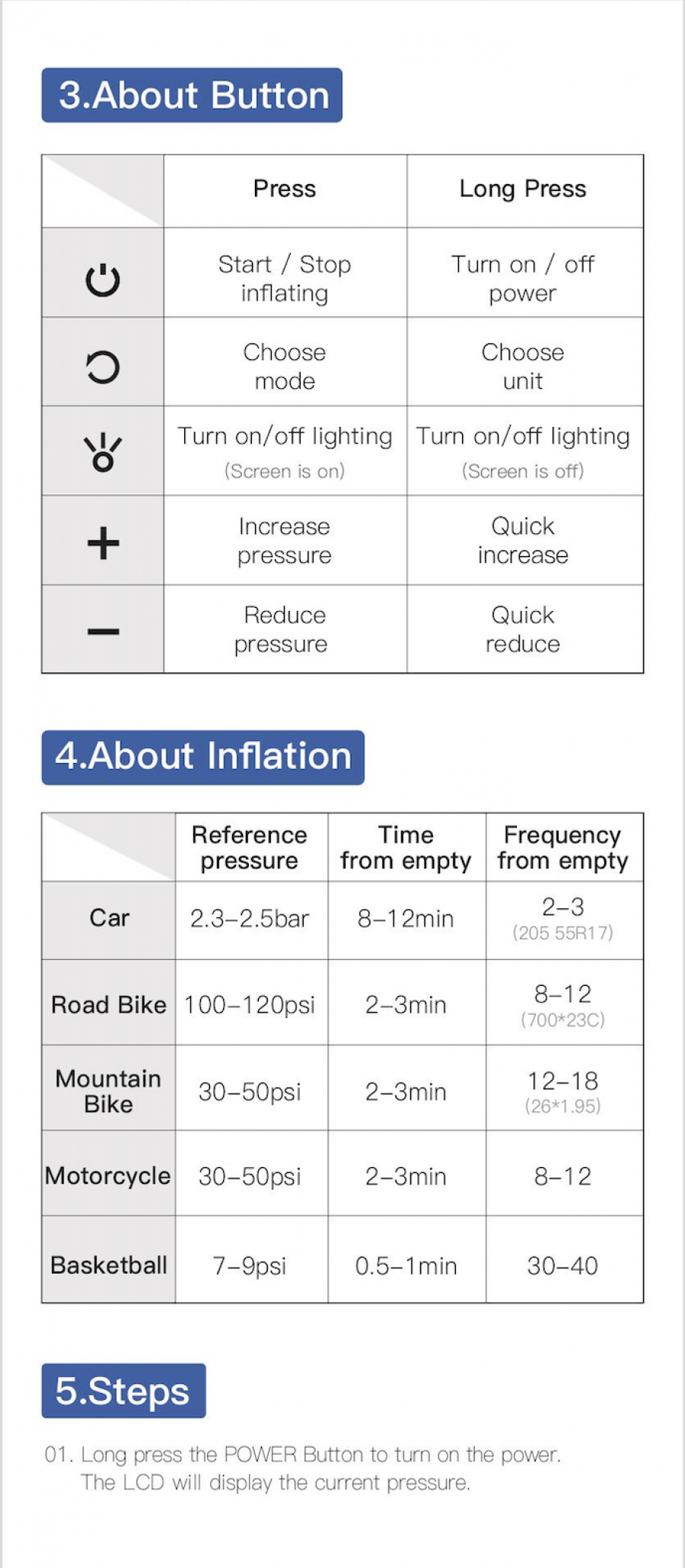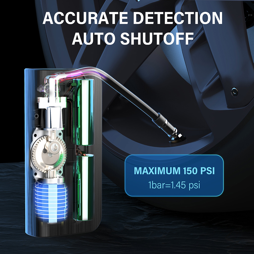 The LED display is easy to read and the current pressure value can be clearly seen during use. The electric bike pump portable will automatically shut off when desired pressure is reached. Plug and play.