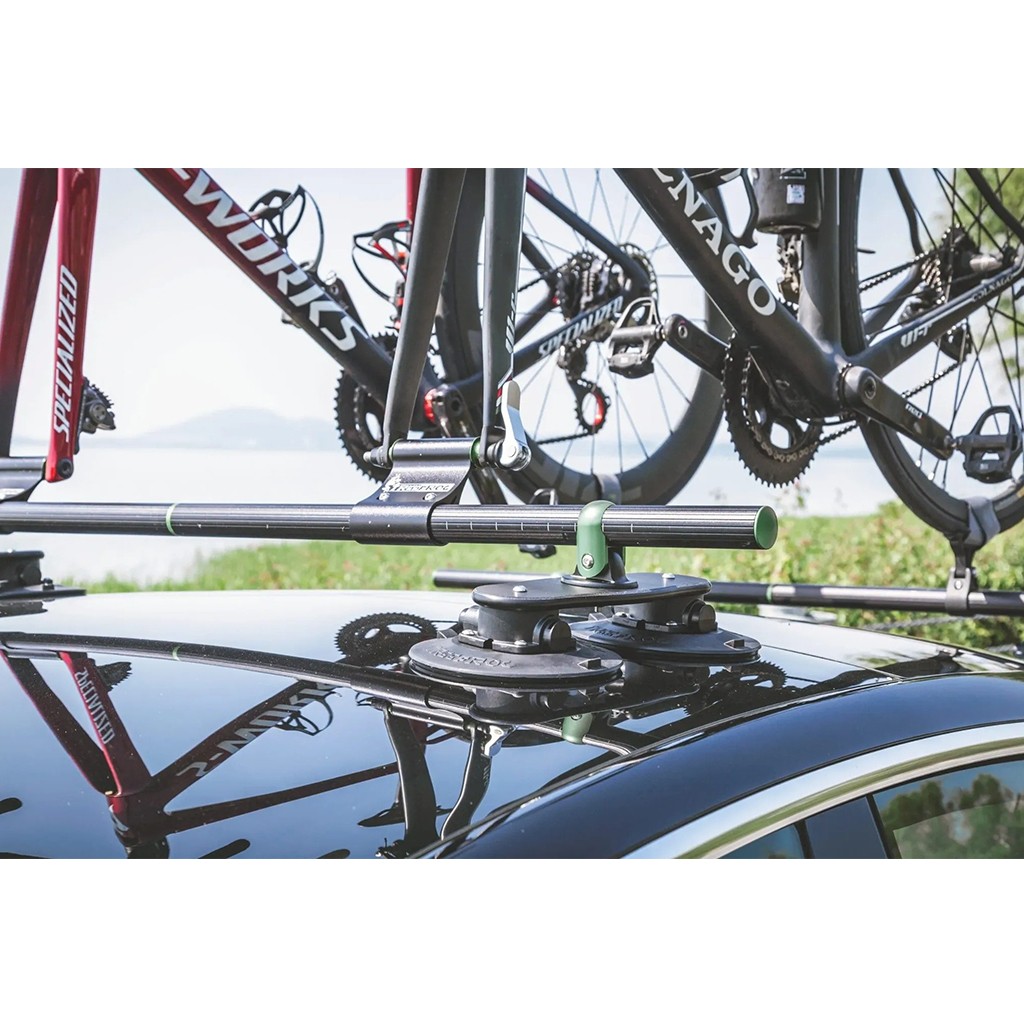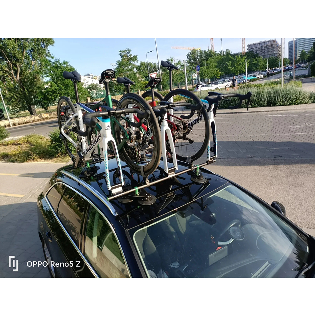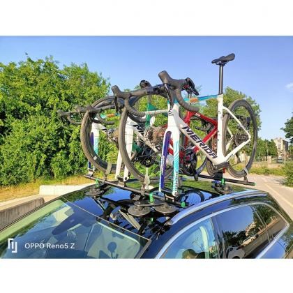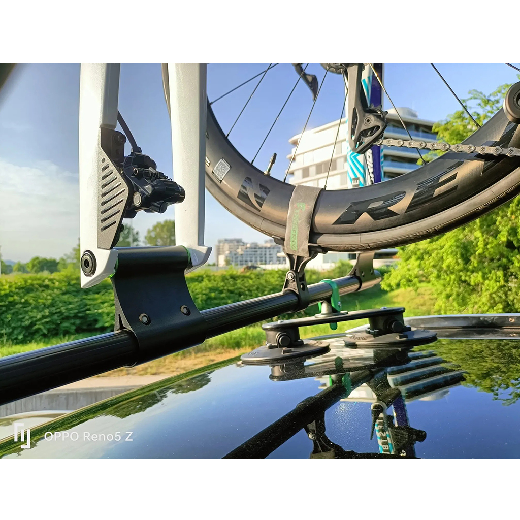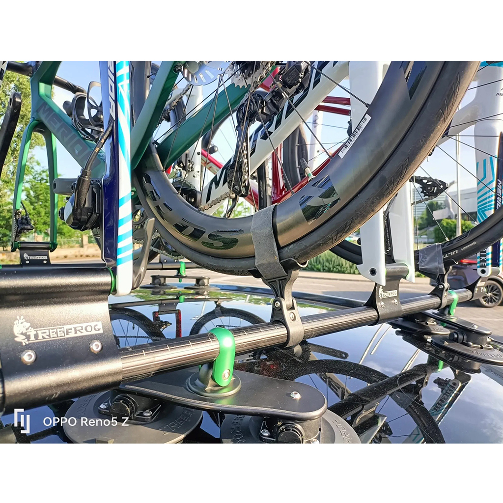 With TreeFrog Bike Racks, you can embark on your cycling adventures with confidence, knowing that your bikes are securely transported and protected from the elements. Our innovative designs, user-friendly features, and commitment to quality make us your ideal partner for exploring the world on two wheels. The TreeFrog Rack is lightweight and strong, capable of carrying upto 3 bikes and a total weight of 70kg. The Vacuum Cups attach to any metal, glass, or fibreglass surface and are TUV Safety Approved. It can be easily packed into a backpack or carried on your vehicle.