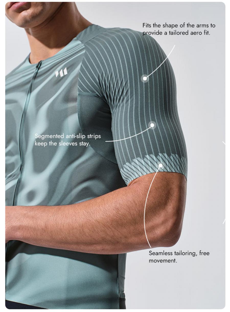 The Valore-Fluidity series is made from PVA ultra-light high stretch polymer technology 80gsm fabric, making it our lightest summer jersey and designed for riding in extremely hot conditions. It's woven with a high-fiber lattice structure with tens of thousands of nanoscale breathable pores for instant, fast drying. Unique striped textured contrast sleeves are a popular variation, with the sleeves being a different color than the main body of the jersey. A third color Italian FULL MOON mesh printed under the arms makes you stand out from the peloton and provides maximum airflow to keep you cool.