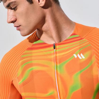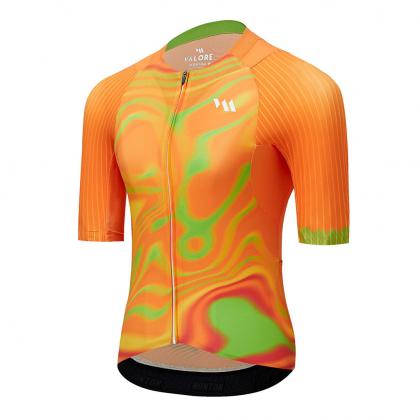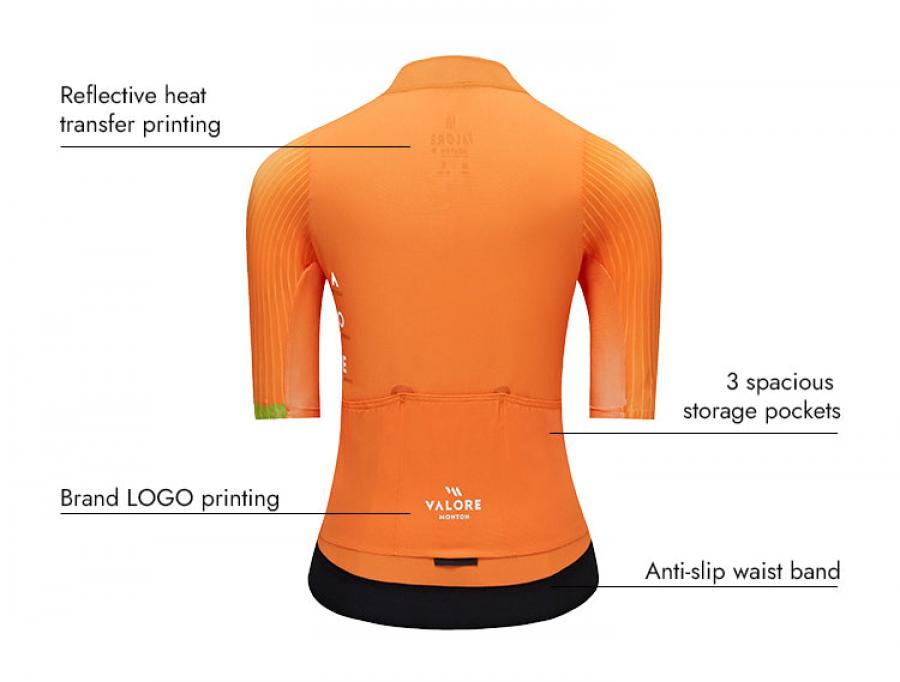 The Valore-Fluidity series is made from PVA ultra-light high stretch polymer technology 80gsm fabric, making it our lightest summer jersey and designed for riding in extremely hot conditions. It's woven with a high-fiber lattice structure with tens of thousands of nanoscale breathable pores for instant, fast drying. Unique striped textured contrast sleeves are a popular variation, with the sleeves being a different color than the main body of the jersey. A third color Italian FULL MOON mesh printed under the arms makes you stand out from the peloton and provides maximum airflow to keep you cool.